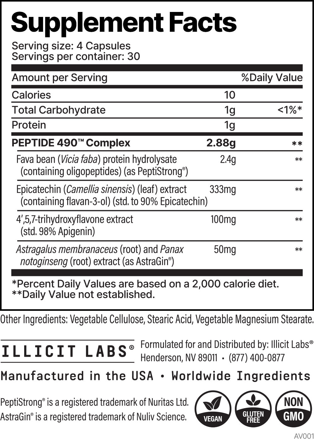 Peptide 490™ is a next-generation muscle support formula created for athletes, fitness enthusiasts, and anyone committed to maintaining lean muscle and supporting recovery. Muscle insurance if you will. At its core is the clinically studied dose of 2.4g of PeptiStrong®—a plant-based peptide matrix developed through advanced AI-driven scientific research.